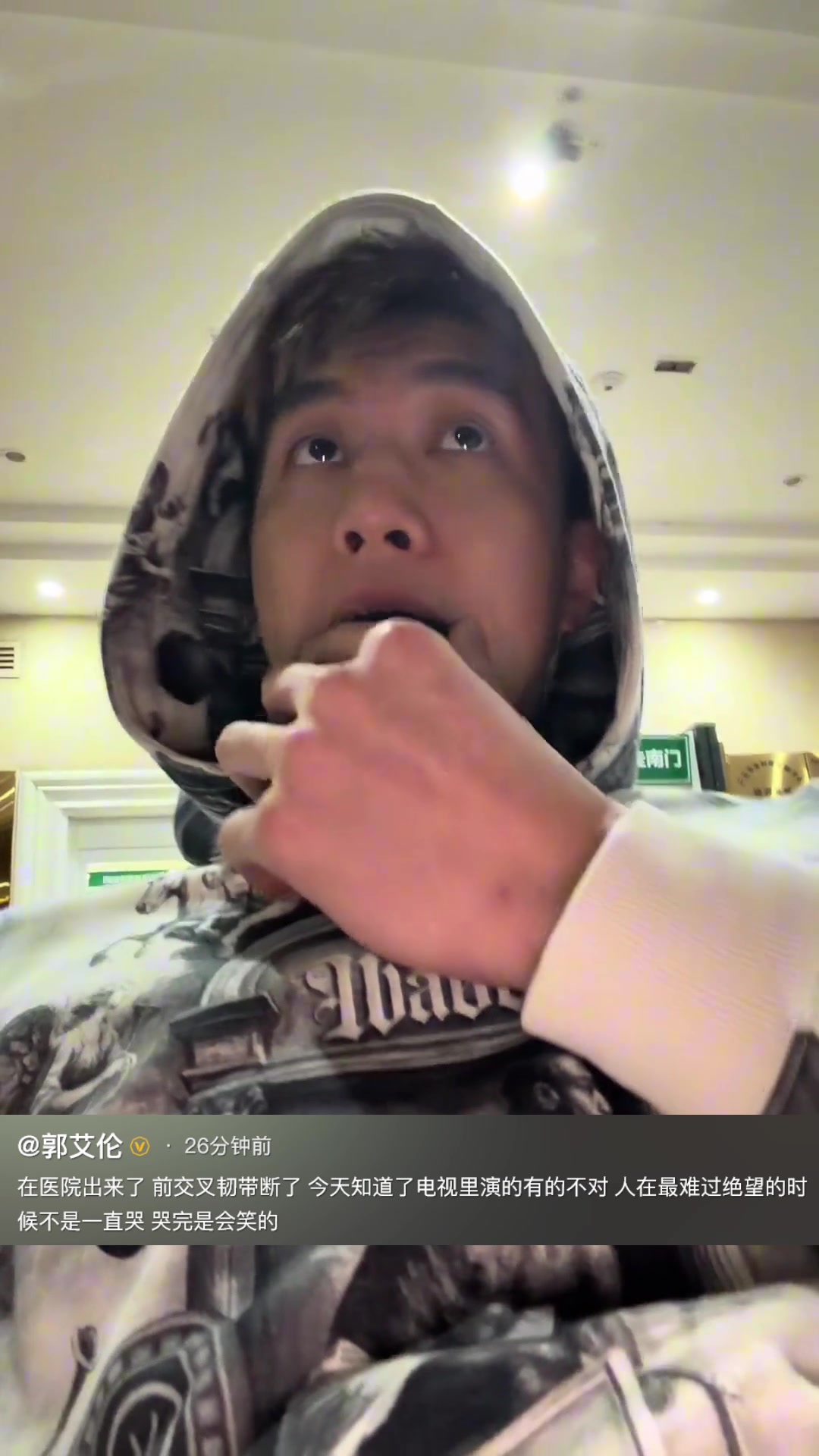 03月05日讯 郭艾伦个人社媒更新伤情:“在医院出来了,前交叉韧带断了,今天知道了电视里演的有的不对,人在最难过绝望的时候不是一直哭,哭完是会笑的。”